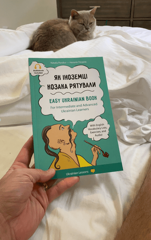 I have only read the book, I haven’t had the time to listen to it. Reading it was a good challenge. I enjoyed the story line and the new Ukrainian vocabulary, especially the language that is now commonly used in Ukraine.